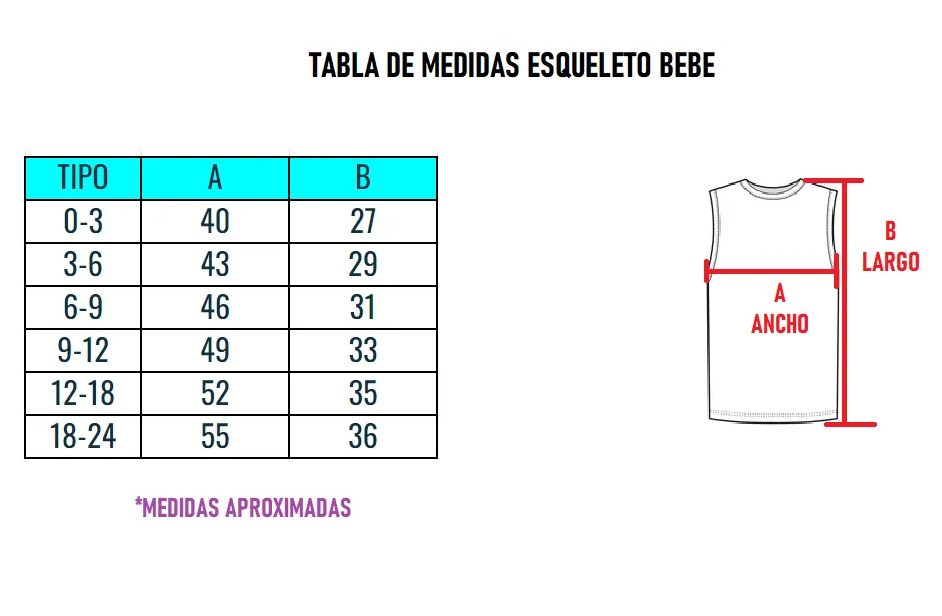 Esqueleto para bebĂ© elaborado en tela suave y ligera, ideal para mantener a los más pequeños fresquitos y cĂłmodos durante el dĂa. Su diseño práctico permite libertad de movimiento, perfecto para acompañarlos en cada etapa de crecimiento.